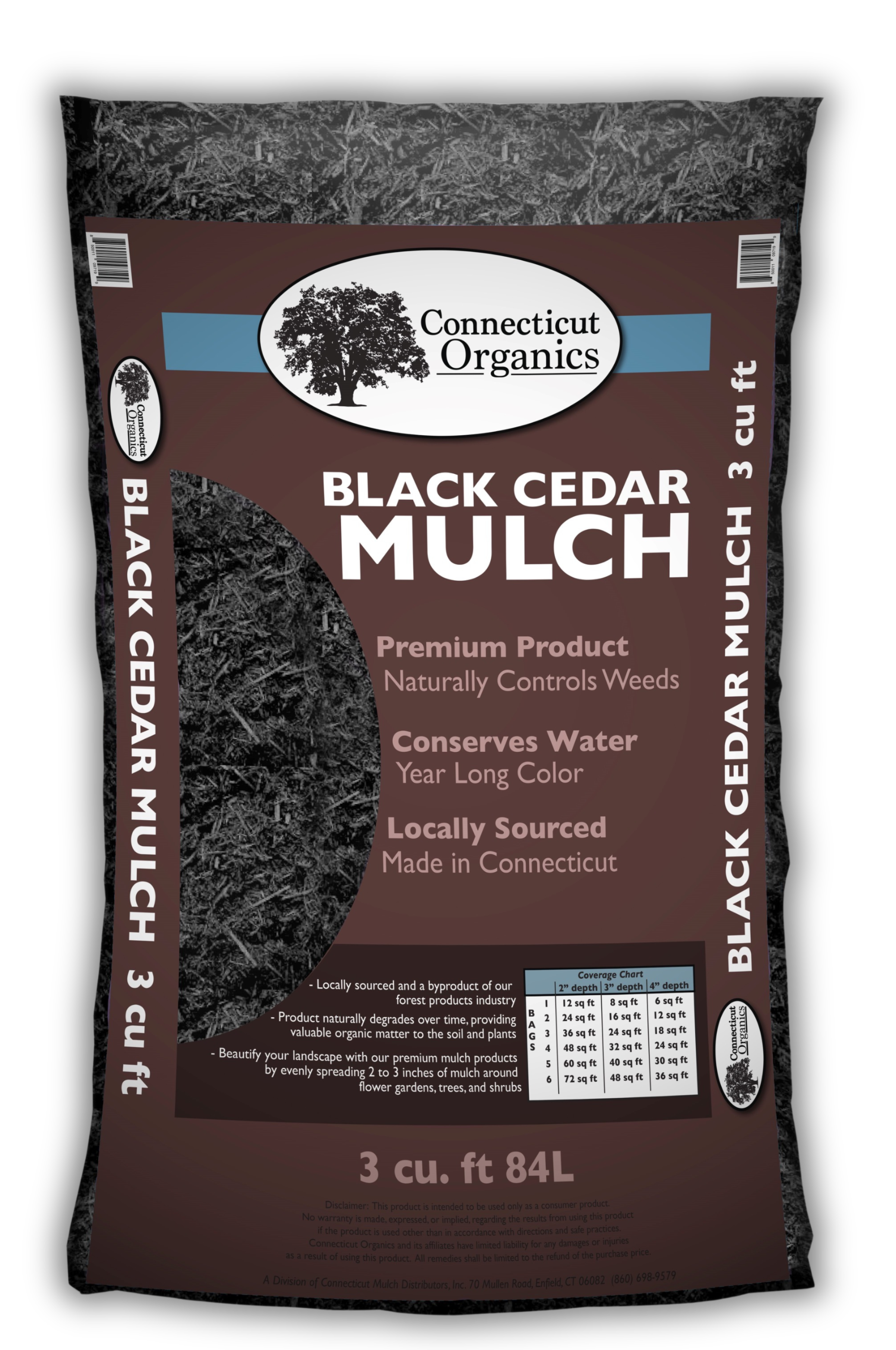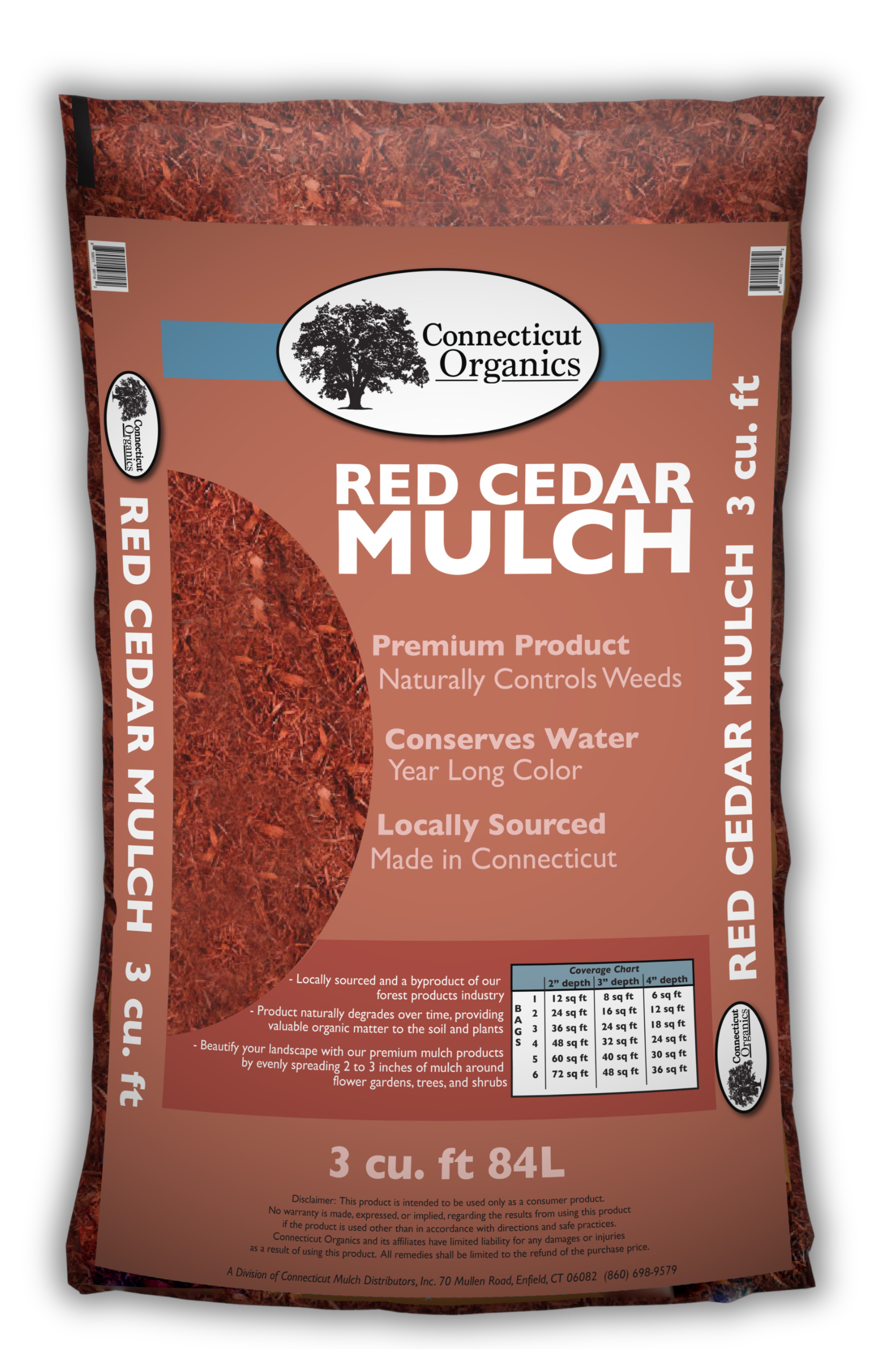 Connecticut Organics Cedar Mulch RED$7.99 BLACK$7.99 Available in 3 cu. ft bags.1 bag: $7.99 | 9 bags: $64.99 NATURAL$7.99 BROWN$7.99